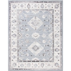 Elevate your space with this elegant 9' x 12' area rug in a soothing grey and ivory palette. Designed in a large rectangular shape with a height of 0.25 inches, it gracefully complements your home with subtle sophistication. Crafted using the hand-tufted technique, the rug is made from a blend of wool and cotton with latex, ensuring a soft and comfortable touch underfoot.