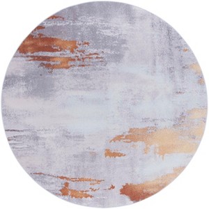 Elevate your living space with our contemporary round area rug. Measuring 6 feet by 6 feet, this rug features a captivating abstract pattern in a sophisticated grey and rust palette. Crafted in China with precision using power loomed techniques, it boasts a soft polyester pile that invites comfort underfoot. This rug is not only stylish but practical, offering easy maintenance with its washable design. The slip resistant feature ensures safety while enhancing your decor. With a subtle height of 1/8 inch, it seamlessly integrates into your space, adding elegance without overwhelming. Transform your home with this modern art piece that blends aesthetics and functionality effortlessly.