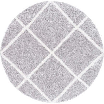 Tahoe Shag THO675 Power Loomed Indoor Area Rug - Light Grey/White - 6'7" Round - Safavieh