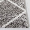 Featuring a classic Shag and Flokati style, it adds a touch of timeless sophistication to any room. The rug's grey base is complemented by a crisp white geometric diamond pattern, presenting a clean and inviting look that pairs well with various decor styles. This rug not only serves as a comfortable addition to your floor but also as a charming focal point that gracefully ties your space together. Indulge in the blend of comfort and style with this exquisite piece.