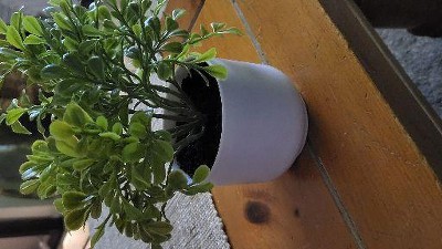 Cute and fits on small shelves and tight areas where you want a bit of green. The pic in description flatters its appearance, but I have the 2 I bought in less that prominent places. So.the less than natural appearance is not a problem The pot is less than 4" in diameter.