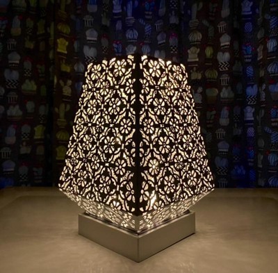 [This review was collected as part of a promotion.] This light is pretty nifty. Its attractive, light weight and portable. Made of metal that has a creative design and casts shadow patterns on the wall/ceiling. LED lighting that takes 3 AA batteries that you insert at the base where the switch is. A cool feature is that this light will shut off after 6 hours on its own and then will turn back on at the same time. You can use it indoors and outdoors. I use it out on my patio and bring it indoors for ambiance. Super handy!