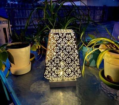 [This review was collected as part of a promotion.] This light is attractive and well made. It looks beautiful and casts delicate patterns on the wall or patio at night time. Another added bonus is that it switches itself on at the same time every evening and turns itself off after 6 hours. I use it as a tabletop light now, but can't wait for summer time to use in our patio. Definitely recommend!