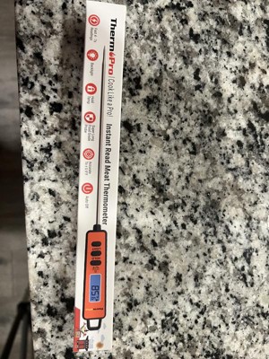 [This review was collected as part of a promotion.] This little thermometer is such a handy tool to keep in the kitchen utensil drawer! I’ve used it so many times and without fail, it always gives me the temperature super quick but accurately! Something i noticed that my other kitchen thermometers don’t do that this one does is acclimate to the rooms temperature the second you turn it on, so super fast and sensitive to temperature. I say it’s the best kitchen thermometer i’ve ever tried, seems incredibly durable too considering i may have accidentally gotten the entire thing wet several times! (don’t do what i did.. just amazed by its durability!) Thr battery is still going strong as well! All in all, a great kitchen necessity to get your meats cooked perfectly every single time.