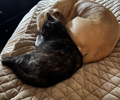 Cindy with 4 cute cats