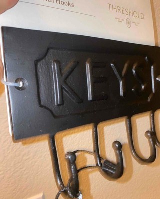 Cast Aluminum Key Sign with Hooks Black - Threshold™: Elegant Entryway Welcome Display, 4-Hook Organizer