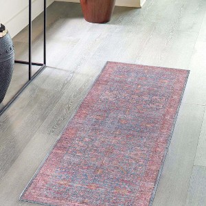 [This review was collected as part of a promotion.] This Mangata Collection Morgan Area rug is absolutely beautiful. I just love the way it looks in my liiving room. The best thing about it is that is actually washable in my washing machine! i have a dog and a cat who can have accidents so thats an invaluable feature for me. The colors are very soft and pretty with an up to date distressed look thats right on trend . Its very soft and plush looking and is a very high quality rug at a really good price. It looks like an heirloom oriental rug to me and the soft antique blue, gray, ivory and red colors are perfect. Im really happy with this decorating choice!