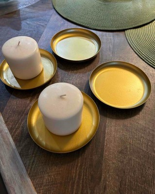 4pk Small Gold Powder Coated Metal Plates Candle Holders - Room Essentials™
