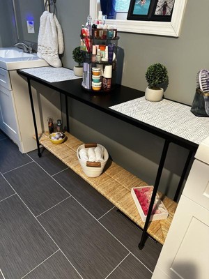 Metal and Rush Weave Top Console Table Black - Threshold™ designed with Studio McGee: Mahogany Frame, Square Entryway Table