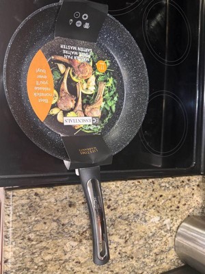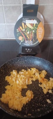 [This review was collected as part of a promotion.] This burghoff essentials non-stick aluminum frying pan works AMAZING. I made fried potatoes, and they did not stick to the pan at all!! Slides right out of the pan, very easy to wash no scrubbing. Great quality overall 100 percent recommended!!