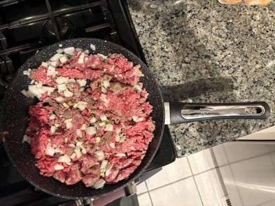 [This review was collected as part of a promotion.] I love this pan! It’s lighter than I expected which I love because don’t get me wrong, the heavy ones are good quality, but they break my dang wrist haha. It’s definitely true to word as nonstick and I love the splatter design on it. Very pretty and well made!