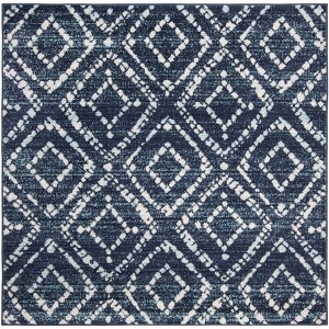 Elevate your space with the timeless charm of our 4' x 4' square area rug, showcasing a striking navy and ivory geometric pattern that seamlessly blends tradition with modernity. Expertly crafted in Turkey using power-loomed technology, this rug boasts a durable and soft pile blend of 55% Polypropylene, 40% Jute, and 5% Polyester, ensuring it withstands the test of time while maintaining comfort underfoot. With its versatile square shape and a comfortable pile height of 3/8", this rug is a perfect accent piece for any room, providing a touch of elegance and sophistication. It's not just visually appealing but also conscientious; OEKO-TEX certification guarantees that it's free from harmful substances. Make a statement in your home with this beautifully designed piece that harmonizes well with both contemporary and traditional decor.