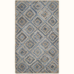 Incorporate this beautiful hand-woven accent rug into your room to anchor your furniture with a dash of color and an authentic handcrafted charm. The natural and blue palette works harmoniously to provide a calming influence in your chosen space, making it an ideal choice for those seeking to