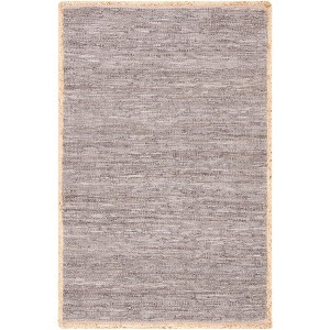 Crafted in India, this rug showcases a blend of 70% leather, 20% jute, and 10% cotton, resulting in a durable and textured finish that is both luxurious and eco-friendly. The light grey and natural tones of this rug provide a serene and versatile backdrop for any room, complementing a variety of decors from the modern to the traditional.