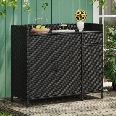 52.7 In. W Mobile Kitchen Island with Drop Leaf Wood Top, Spice Rack and Locking Wheels Black-ModernLuxe