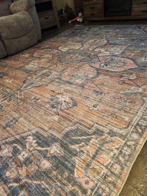 The classic look of traditional rugs gets a modern reinterpretation with the Nostalgia collection. Here, priceless styles sought after by collectors get reimagined for modern homes. Well-loved medallion shapes and traditional floral flourishes complement the rich yet muted tones of ivory and pink, beige and gray and antique blue. A combination of over-dyed and distressed shades gives each rug in the Nostalgia Collection a vintage look. The Nostalgia Collection makes multi-room placement a breeze with coordinating designs, each with its own personality. Made of soft polyester chenille, the machine woven, power loomed construction creates a durable flatweave design that's easy to care for. With a low pile height, it's easy to keep clean and also is completely machine washable, kid-friendly and stain-resistant.