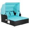 Costway Patio Rattan Daybed Lounge Retractable Top Canopy Side Tables Cushions Off White/Red/Turquoise/Beige