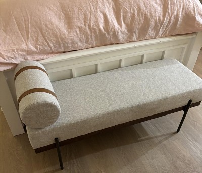 This bench is stylish and well built. The metal brackets that hold the rolled pillow in place give it a unique, high end look.