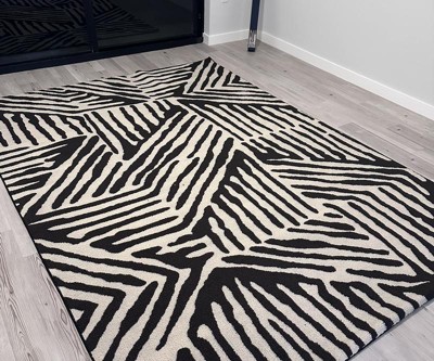 Update any living area with this Abstract Lines Rug from Threshold™. This area rug showcases a design of abstract lines in tan and black hues for a modern look that coordinates well with any interior decor. Made from soft tufted fabric with a low pile height, this indoor rug is ideal for placement in high-traffic areas like your living room, hallway or dining room and is easy to spot clean. The fade- and stain-resistant construction offers lasting use, and skid-resistant latex backing helps to keep it from sliding around your floor.