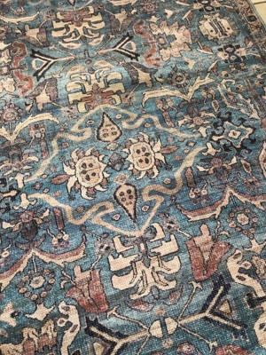 Actually love the vintage look of this rug and the colors are beautiful and vibrant, fairly true to what my monitor showed. The rug has a slightly aged look, which is pleasing and what i was looking for. Still deciding whether i need to add a rug pad. One star off for “washable” description on product page. Machine washable vintage appearing rugs are extremely popular currently and what I was looking for. Based on the instructions included with this rug, it appears that “washable” means “spot clean” only.