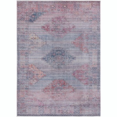 The classic look of traditional rugs gets a modern reinterpretation with the Nostalgia collection. Here, priceless styles sought after by collectors get reimagined for modern homes. Well-loved medallion shapes and traditional floral flourishes complement the rich yet muted tones of ivory and pink, beige and gray and antique blue. A combination of over-dyed and distressed shades gives each rug in the Nostalgia Collection a vintage look. The Nostalgia Collection makes multi-room placement a breeze with coordinating designs, each with its own personality. Made of soft polyester chenille, the machine woven, power loomed construction creates a durable flatweave design that's easy to care for. With a low pile height, it's easy to keep clean and also is completely machine washable, kid-friendly and stain-resistant.