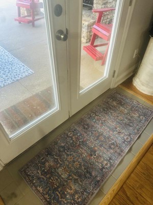 This rug is everything I had hoped. Perfect length, beautiful colors and nice and flat so the bathroom door will open. Compariable to a Ruggable.
