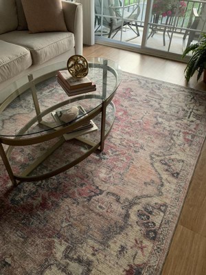 The classic look of traditional rugs gets a modern reinterpretation with the Nostalgia collection. Here, priceless styles sought after by collectors get reimagined for modern homes. Well-loved medallion shapes and traditional floral flourishes complement the rich yet muted tones of ivory and pink, beige and gray and antique blue. A combination of over-dyed and distressed shades gives each rug in the Nostalgia Collection a vintage look. The Nostalgia Collection makes multi-room placement a breeze with coordinating designs, each with its own personality. Made of soft polyester chenille, the machine woven, power loomed construction creates a durable flatweave design that's easy to care for. With a low pile height, it's easy to keep clean and also is completely machine washable, kid-friendly and stain-resistant.