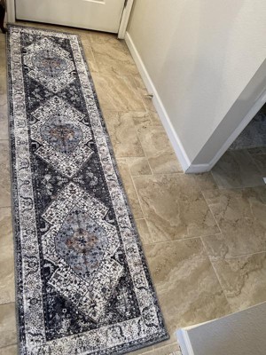Rug looks nice. Paired it with the performance pad and it stays put and provides some cushion on our bathroom tile floor. Colors are nice-the charcoal leans on the navy side