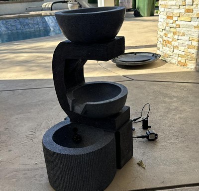 LuxenHome Gray Resin Raining Water Sculpture Outdoor Fountain with LED Lights