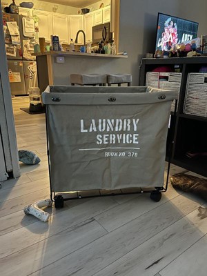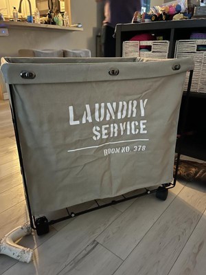 Danya B. Army Canvas Laundry Hamper on Wheels: Heavy Duty Beige Clothes Sorter, Portable Iron Frame, 32 Volume Capacity