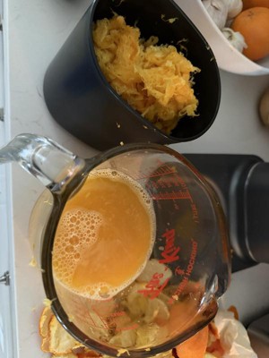 The orange strainer had pulp stuck and broke within a month of owning. So sad.
