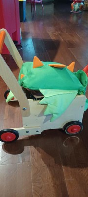 [This review was collected as part of a promotion.] This push along dragon walker is so cute. It is made out of wood and is easy to put together. The plush dragon is adorable and his head is a pocket. The dragon's body lifts up and inside is a toy storage compartment. My son loves this toy.