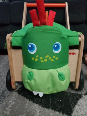 HABA Dragon Wooden Baby Walker Wagon and Baby Push Toy that Turns into a Toy Box for Toddlers, Push Walker with Brake for Adjustable Speed