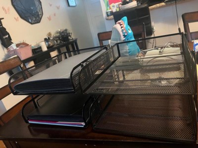 [This review was collected as part of a promotion.] I love these metal mesh orgaanizer for everything paper! From outgoing mail to new mail and newspapers that come in, I make good use of it. It is sturdy and aesthetically pleasing on our office tables and on the table by the door.
