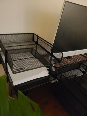 [This review was collected as part of a promotion.] This metal tray desk organizer by Mind Reader is so perfect for my desk top setting.I recently got a printer and was having trouble storing my printer pages in a convenient place.This completely resolves the issue and I have extra space to keep my printed material.I can stack these on.top of each other that is space saver.It is so easy to put togather that my 6 year old did it for me and it is very strudy does not jiggle.Also when you need to put it away it is so easy too.It comes with some other screws too which I do not need at the moment as I only have desktop setting.This good quality and light weight but can hold weight.