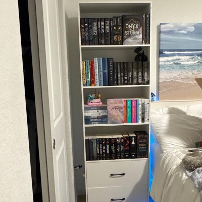 I had been looking for a bookshelf with drawers for a long time. This bookshelf will do but I wish the drawers were bigger. As you can see in the pictures, the drawers are smaller than they appear in the product image. Assembly took about 2.5 hrs. Overall, happy with my purchase and price (under $200).