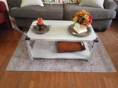 [This review was collected as part of a promotion.] I absolutely love this beautiful coffee table. It is a well constructed table and the instructions were very easy to follow. It took me about 45 minutes to assemble. This table is very sturdy and I absolutely love the Farmhouse look and it goes perfectly with my grey sofa. It is the perfect size and I like that it is 2 tier, Just what I needed. If you are looking for a beautiful well made coffee table I highly recommend this one.