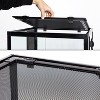 - The full screen top allows UVB and infrared penetration, and is completely removable for easy access while decorating or cleaning. Durable locks secure the screen top to the terrarium frame. The top has built-in closable inlets on both sides to securely run wires and tubing inside the terrarium and keeps small reptiles and feeder insects inside the terrarium.
