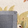 Our accent rug is rendered in a warm and inviting ivory base, offering a neutral canvas that allows the vivid patterns to truly shine. The rug showcases a whimsical pattern brimming with rustic appeal, featuring lively roosters and hens surrounded by lush foliage and intricate border designs.