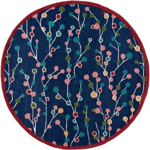 Embrace the charm of nature and the elegance of artisanal craftsmanship with our exquisite 6' X 6' Round, Hand Tufted area rug. Drawing inspiration from the serene beauty of the countryside, this rug presents a symphony of florals set against a deep blue backdrop, perfect for adding a touch of sophistication to any space.
