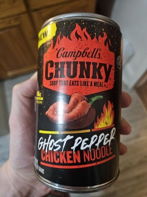 If you enjoy chicken noodle soup with a KICK, this soup is for you. This soup has a lot of flavor to it. I like how the ghost pepper gives this soup a nice punch. If you're sick and need to clear your sinuses I would give this a shot if you can handle spice. If spice isn't your thing I would NOT recommend this then. The noodles and chicken are the same as the original chunky Cambells soup. Same texture and taste. I think the can looks cool too. 😜