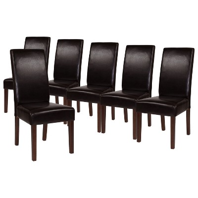 Product Name: Merrick Lane Mid-Century Panel Back Parsons Accent Dining Chair in Brown Faux Leather
