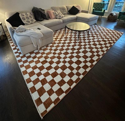 [This review was collected as part of a promotion.] It's such a pretty and soft rug. The folds have become less noticeable with stacks of books and time passing since I laid it out. My one complaint is that I thought that the orange squares were solid color, but it's like different shades in stripes. It's less to my liking but when I'm not focusing on it or see it from afar I still love it so much. It's not the best quality rug either, but it's 2025 and everything manufactured these days is not made to last, it's made to fall apart so you buy more and more. Other than that it's great.