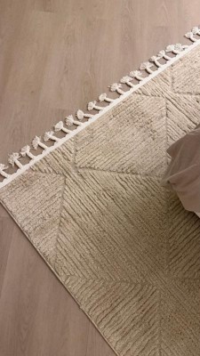 [This review was collected as part of a promotion.] This rig is surprisingly pretty! It was just what I needed in a rug in my sitting area. I didn't know what I wanted but I decided to try this one, Love the color, the tassells and the pattern in the rug, it is simple yet all of the items just noted make it a lovely rug. I was looking for a beige rug and decided to try it thinking If it didn't work I would return it. It turned out that I actually love the rug and the price was really reasonable and it looks great in my room.
