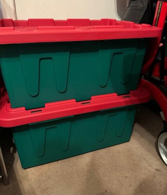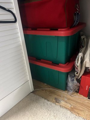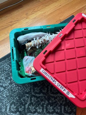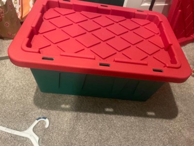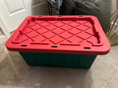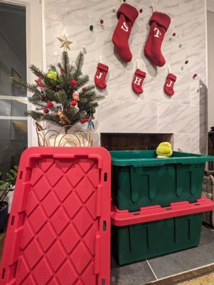 HOMZ Durabilt 15 Gallon Heavy Duty Holiday Storage Tote, Green/Red (4 Pack)