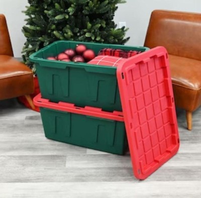 [This review was collected as part of a promotion.] These storage bins are great for your holiday storage needs with the festive green and red color combo but they are also great for moving needs or anytime storage needs! The lids snap on tightly and the containers are sturdy when stacked. The totes are heavy duty to hold lots of different items but are no so big or heavy that they are hard to move around. I was able to get a good bit into one of the bins and still able to move it easily enough. These will be great for an upcoming move!