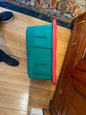 [This review was collected as part of a promotion.] These were great for storing my Christmas decorations this season. Their red + green color makes them perfect for knowing which seasons items are in the totes without having to label them. I do wish they were slightly bigger + I ended up having to use larger totes for larger decor but beggars can't be choosers.