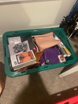 [This review was collected as part of a promotion.] We decided to use one of these totes for Christmas items but it was such a heavy duty plastic that we just had to use the other for something else. We have a plethora of monitor stands from having 8 monitors in the house and changing stands to be more efficient for work related and gaming related so we have extras and no tub or box was sturdy enough because they’re heavy and have blunt hard ends and edges. This tub works great for pretty much anything, including heavy and hard items!