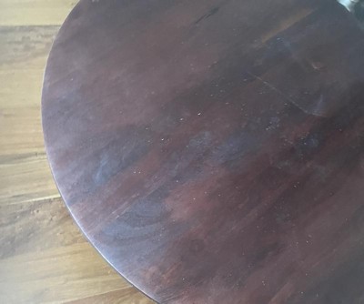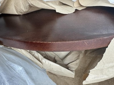 Came scratched. Looked like someone had received my box before me based on how it was opened on the inside. Edges have stain scratched off and it has a seam down the center of the table top. Top was also scratched. Debating whether to return or exchange. I like the style and size was perfect for our small tasting room