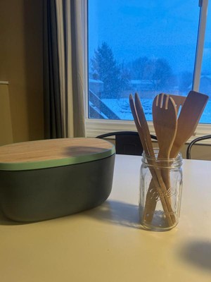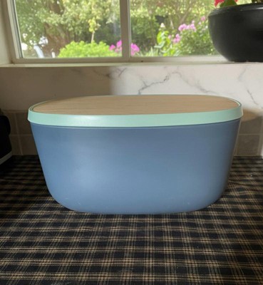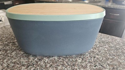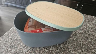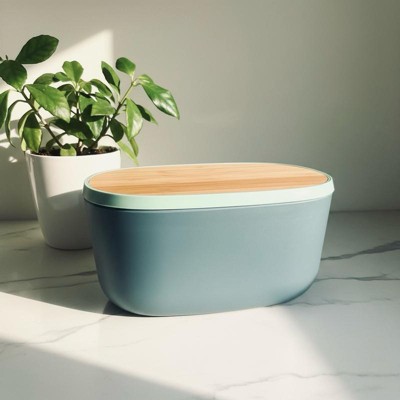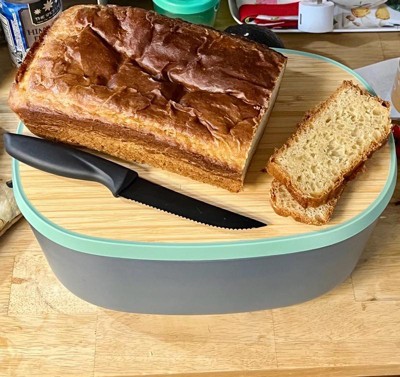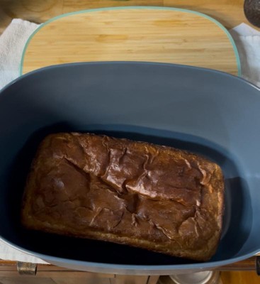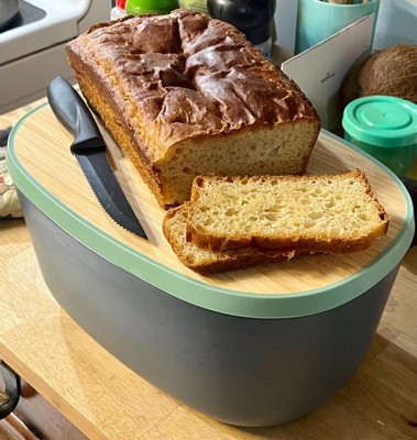 [This review was collected as part of a promotion.] What a perfect little bread box! It has the right amount space to store a k fill loaf! The container color is perfect for keeping light out, and keeping bread fresh. And the tight lid helps prevent it from drying out! It also has a bamboo cutting board on the top, so you can slice a piece with ease as you need! I love the modern look to it, and it fit perfectly in my hutch! I love it!!